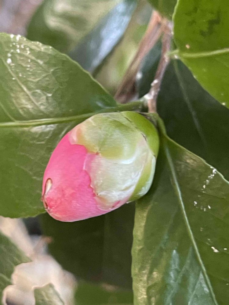 鎮守の杜に咲いていたツバキの花と蕾です。😊🎶