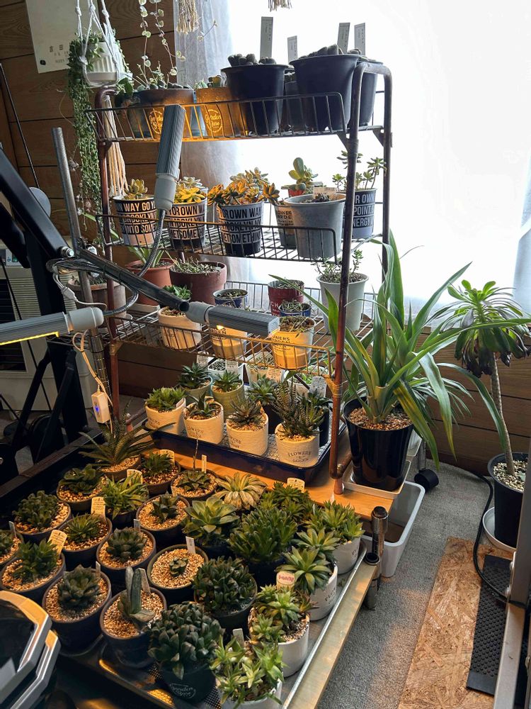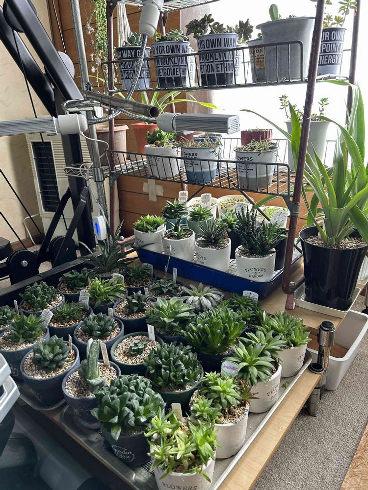 そろそろ動き出す多肉植物の棚を変更、今まで外で育ててた子たちも今年は室内の南側一等地で育ててみることにしました。