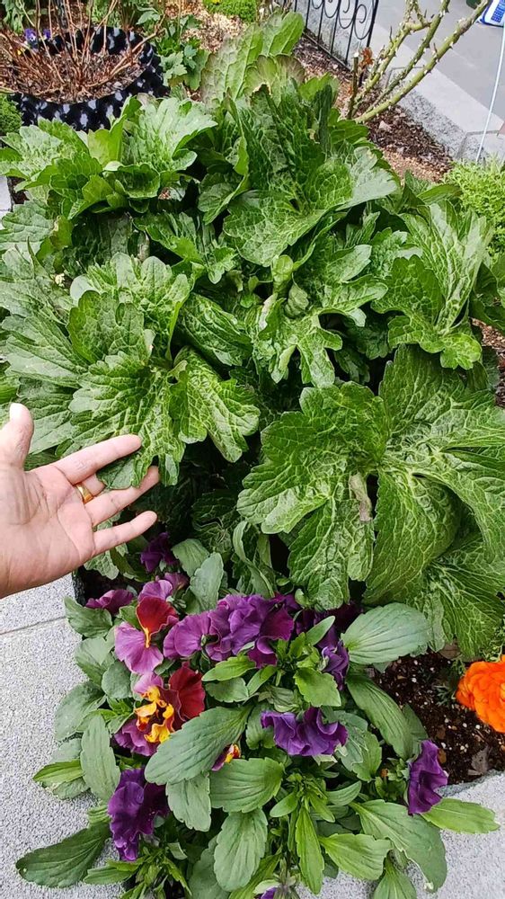花壇のミネルバはセロリの様に茎が太くなってます~後ろがバラなので前方へ植えたけど…去年よりも↗️⬆️~つられて隣のパンジーも大きくなってます😅
