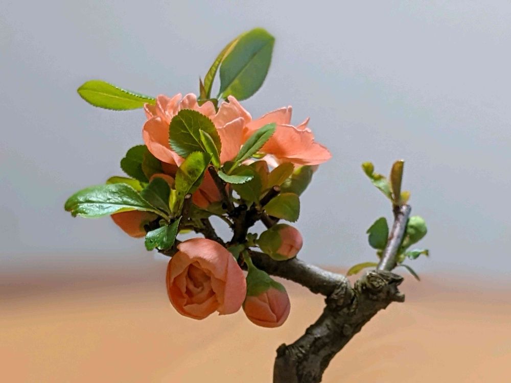 派手でなく、上品なオレンジ色、木瓜の花がやっぱ好きだなぁ