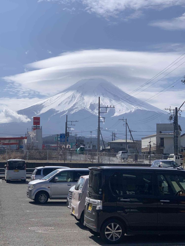 午前中、買い出し行ったら富士山に綺麗に雨雲がかかっていました😊
