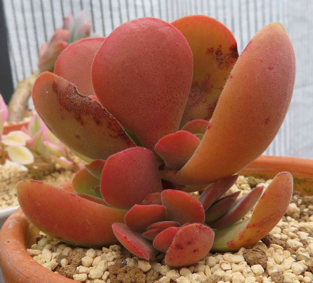 小さい子株まで一斉に赤くなったのはいいけど,葉の裏に汚れのような模様が時々できてしまう。どうすればきれいに育つかわからない。