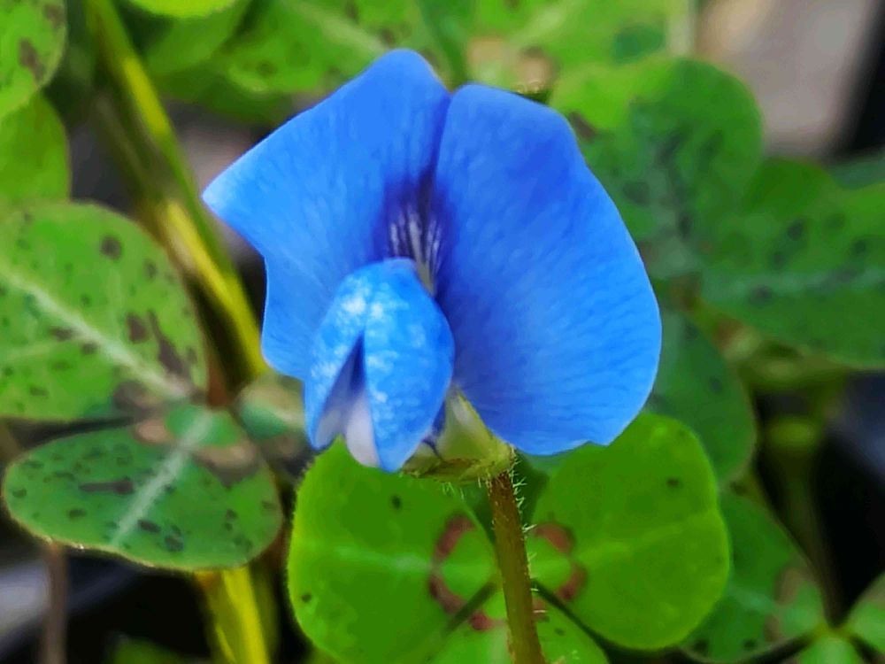 美しいブルー。確かに葉っぱはクローバーみたいだけど、花が豆みたい。初めて見たかも……。