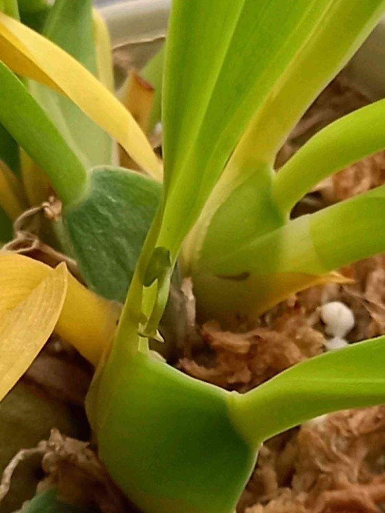 親株の葉の🟡化は多いですが、小さな初花芽発見