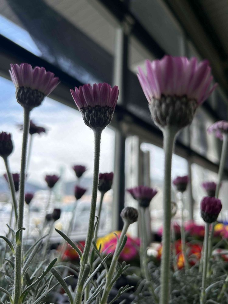 シルバーがかった美しい葉から茎を伸ばした先に可愛い花🩷