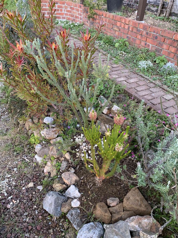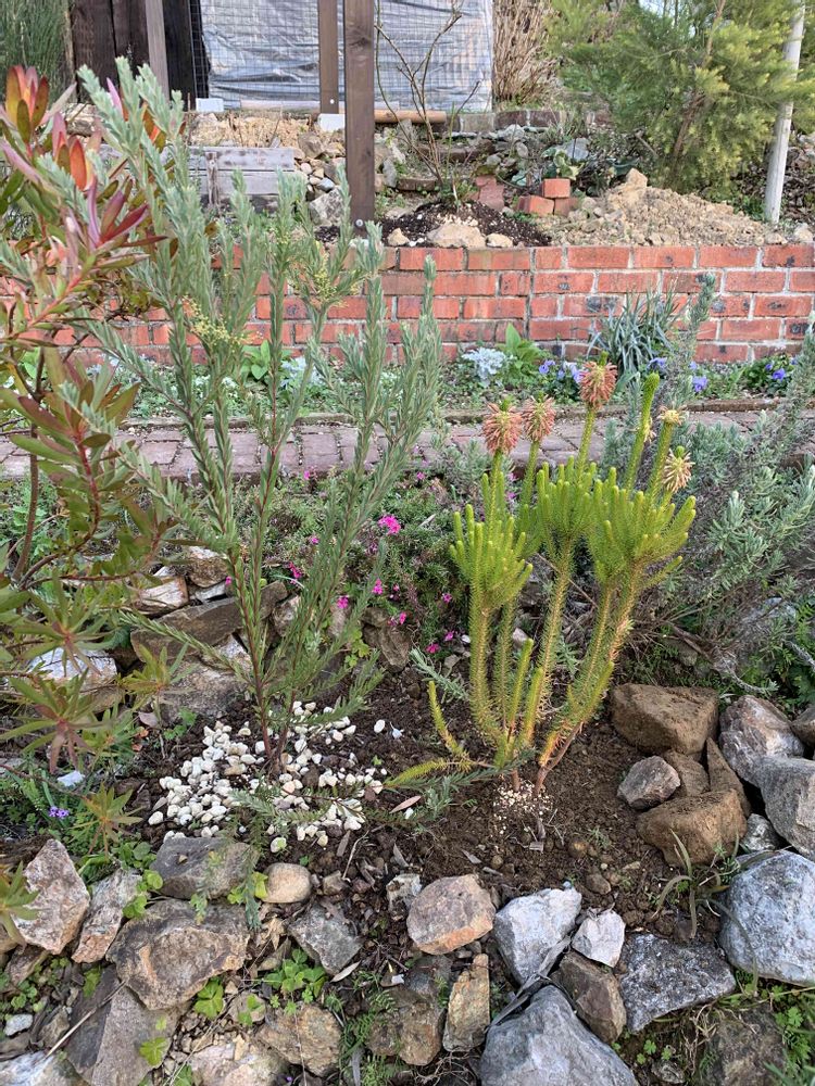アカシアゴールドチップとエリカセシルフローラを地植えしました。