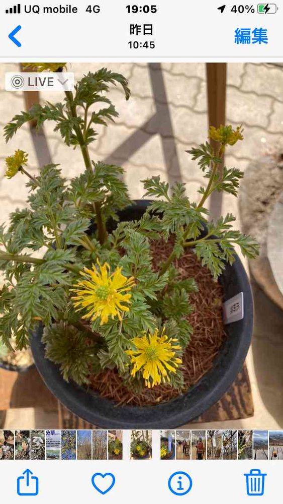 Mahora稲穗山森の美術館 ⛰🪴入口横に鉢植えがありました、珍しい福寿草🥰😊ツメオリカサ💕