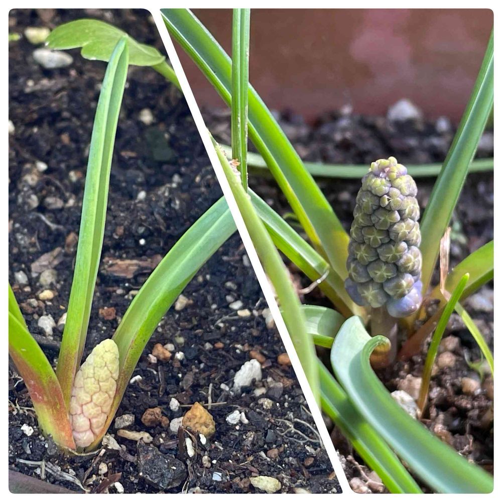 ムスカリの蕾がほんのり色付きはじめました☺️