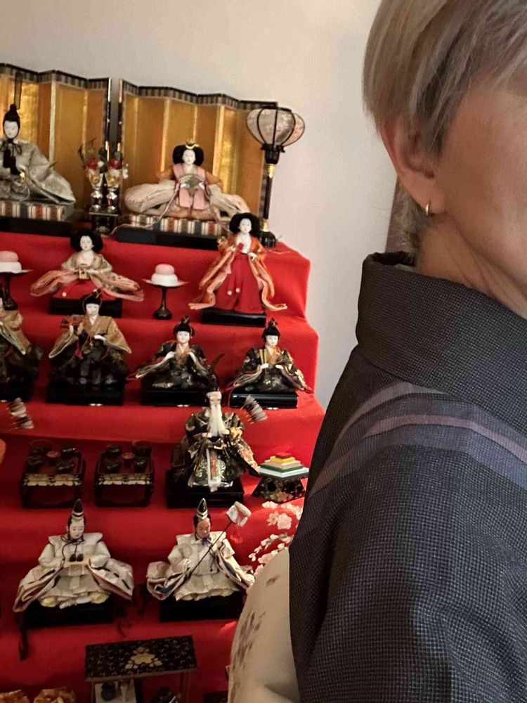 今日は!見ていただいてありがとうございます。今回は着物チラ見せです😆この時期は来客も多いです。生徒さんや友達にお雛様見に来てもらいます。