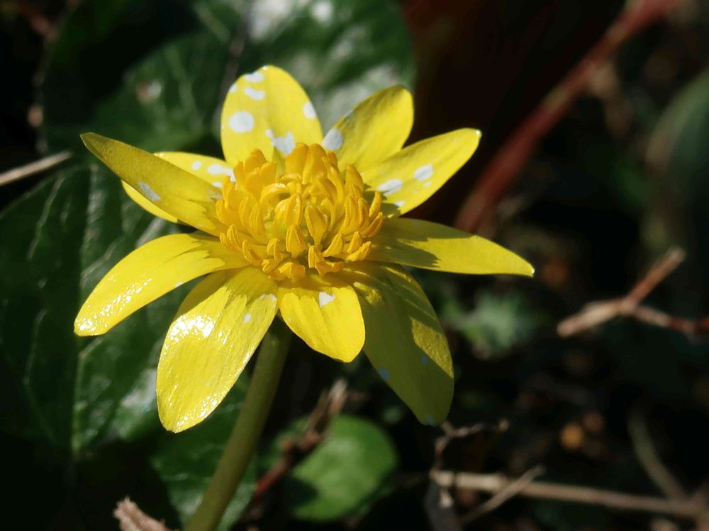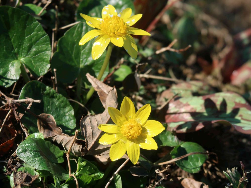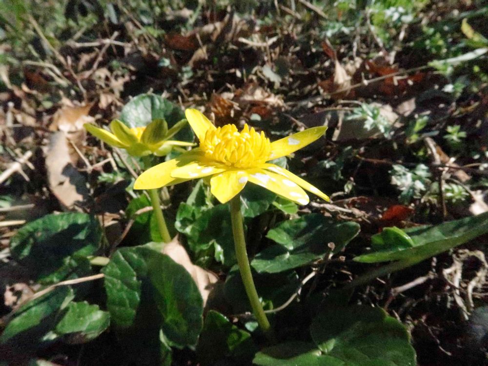 出かけ先で見たヒメリュウキンカ。黄色い花びらが光っていました。
