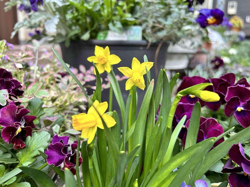 去年から植えっぱなしのミニ水仙の鉢に植えた神戸べっぴんさんは随分前から可愛いお花を見せてくれていましたが、ここに来てミニ水仙が咲きました😊