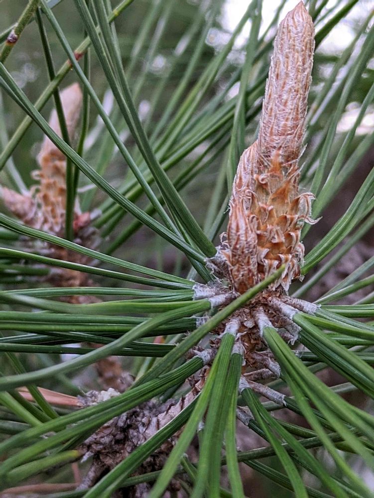 正月のマツも他のナンテンやキク等が枯れても、まだ元気で、何やら蕾のようなものが出てきて、玄関から室内に移してまだ、見ている。