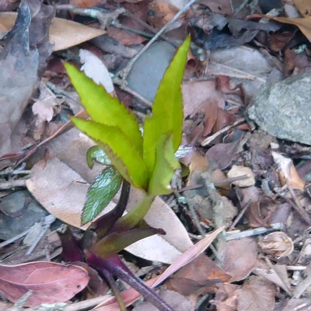 ちなみに近所からのこぼれ種と思われるクリスマスローズも。昨秋見つけて、古葉はカット済み。