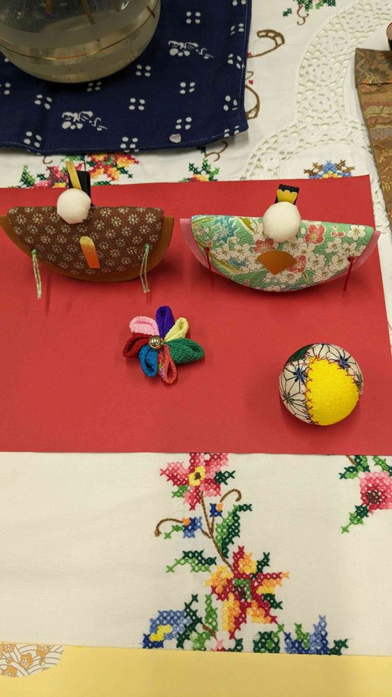 友は昔作られたお雛様の作品を持ってこられ可愛い女の子のお孫さんが一緒にお手伝いをしてました。