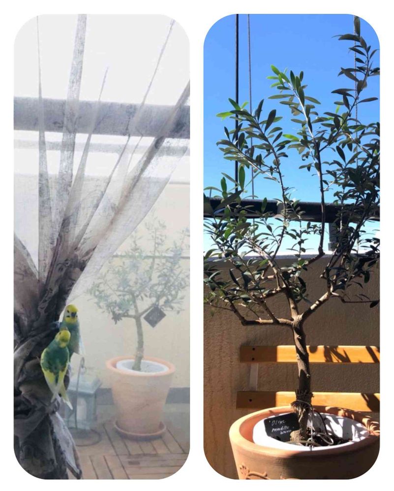 初ガーデニングで、もしゃもしゃの売れ残りのオリーブ🫒適当にカットしたのですが…嬉しいです〜\(//∇//)\