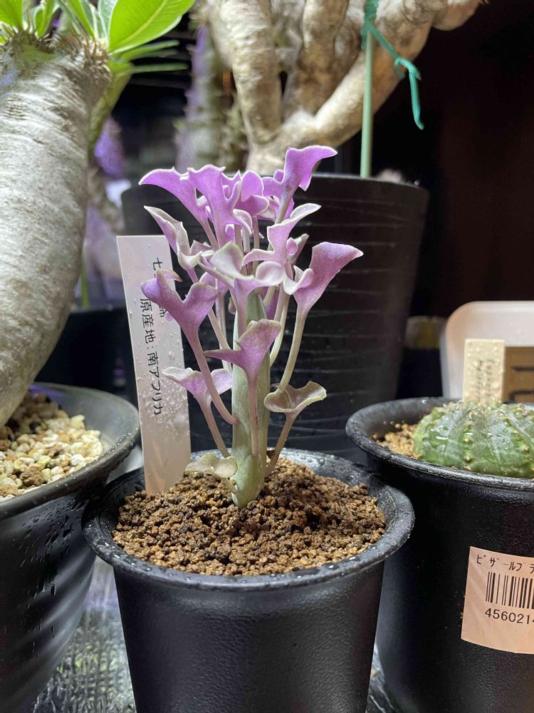 まず目的の買い物しないと怒る💢人が居るので‥💦七宝樹、面白い色ですよね〜。菊科の植物は、あまり興味ないんですがLEDに照らされた綺麗な紫色を見てつい。ついでに隣にチョット写ってるメロフォルミスも連れて来てしまいました😓