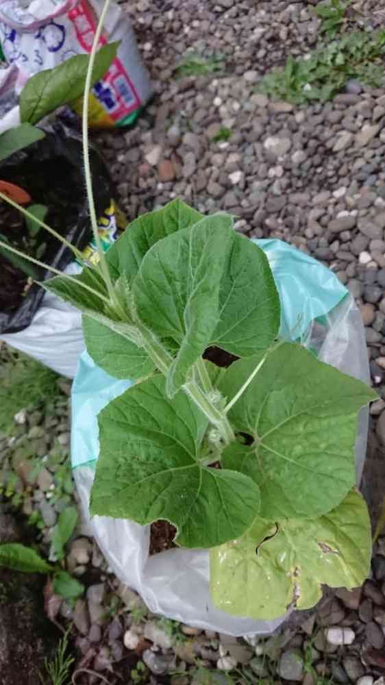 葉の触り心地が自分の育ててるキュウリとは少し違うので、まずは、かぼちゃと予想して育ててみますね🎃