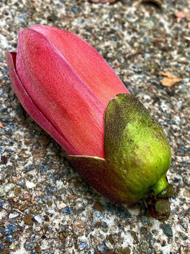 2枚目はつぼみのまま落ちていたキワタ♥️長さ10cm、太さは4cmくらいあって踏んだら滑りそうで大変‼️気をつけないと😆