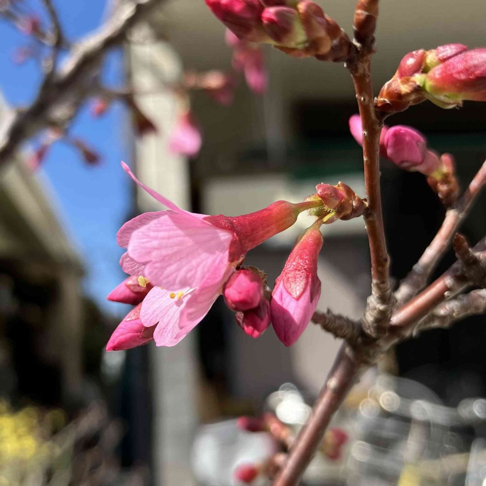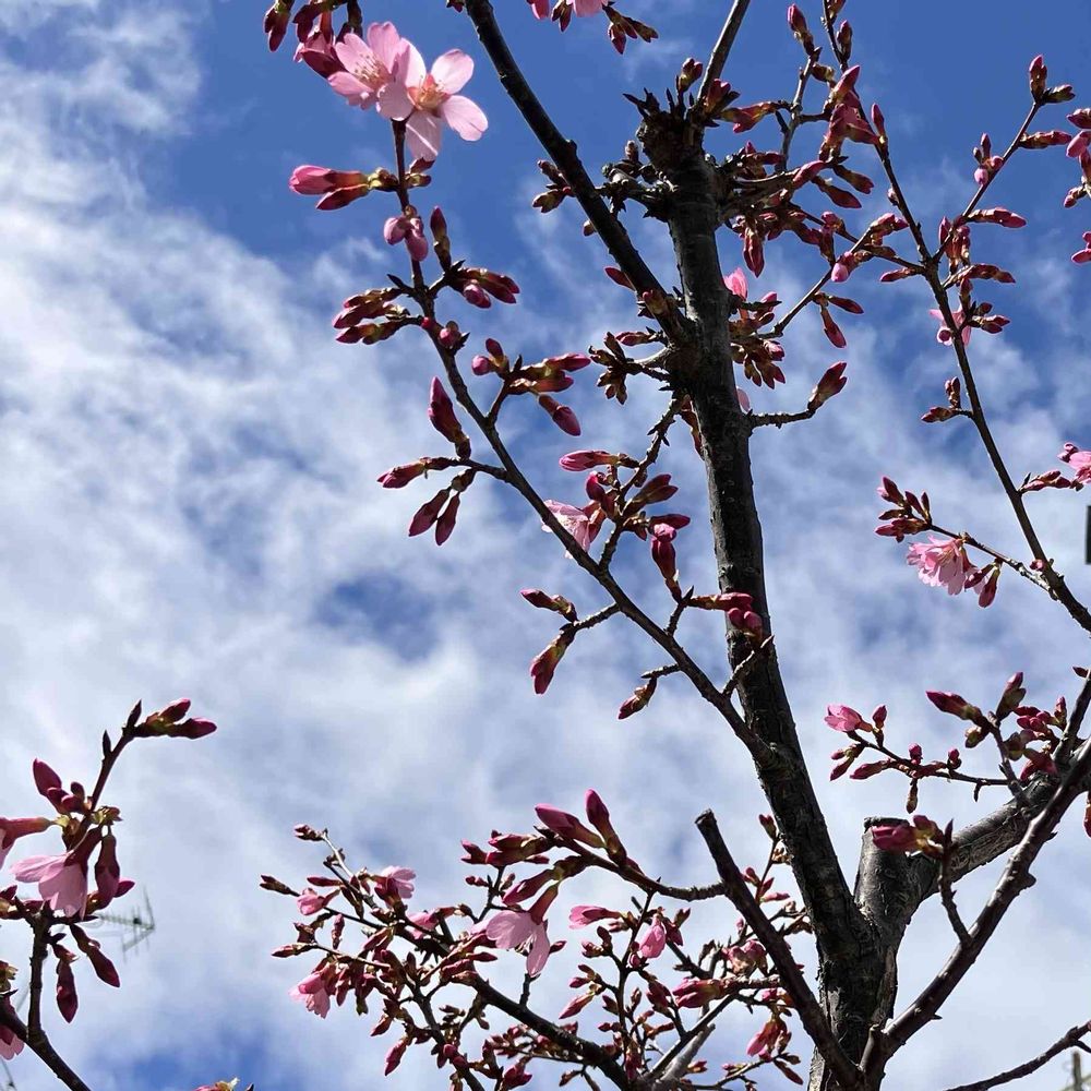 開花宣言した おかめ桜🌸