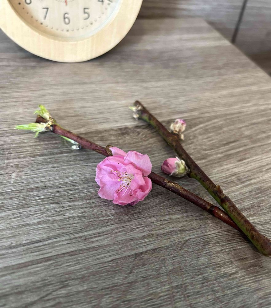 昨日の息子たちとの会食のお膳に付いていた桃の花です。
