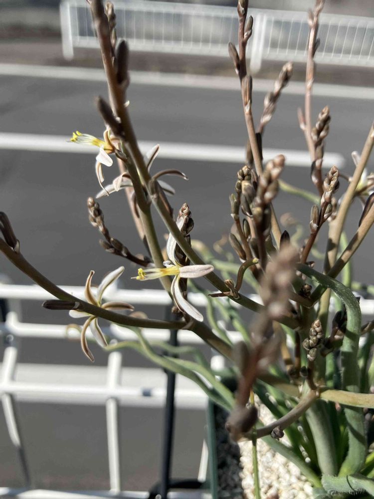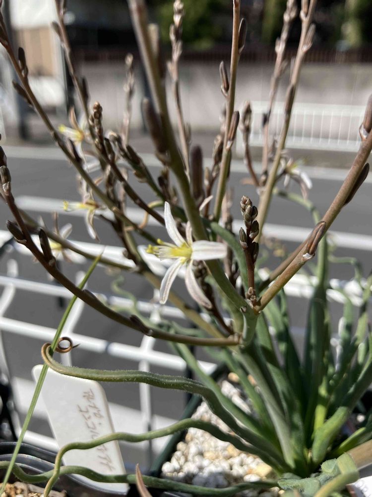 花はハオルチアに似ていますが南アらしくブロッチがあり、風媒花では無さそうです🐝