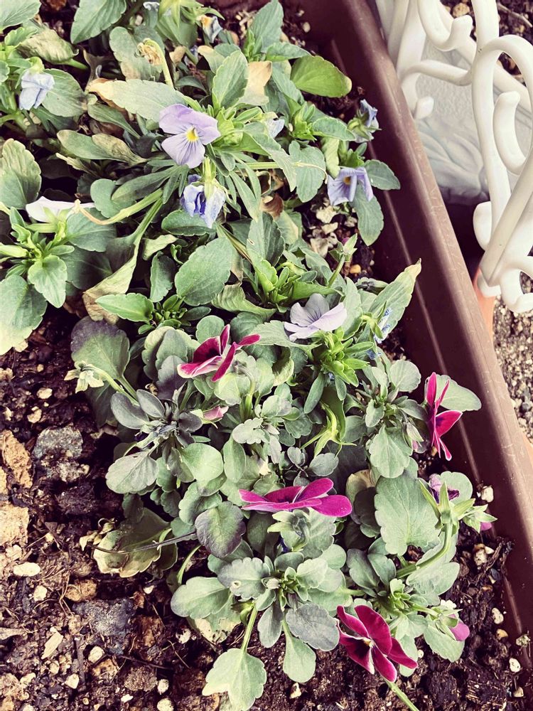 ハト🐦に踏まれ、踏まれで大部分が弱くなってしまいましたが😥💦💦何とか咲いてくれてるビオラちゃんです。でもさすがに1つのお気に入り株は力尽きてしまいました😥😓🐦