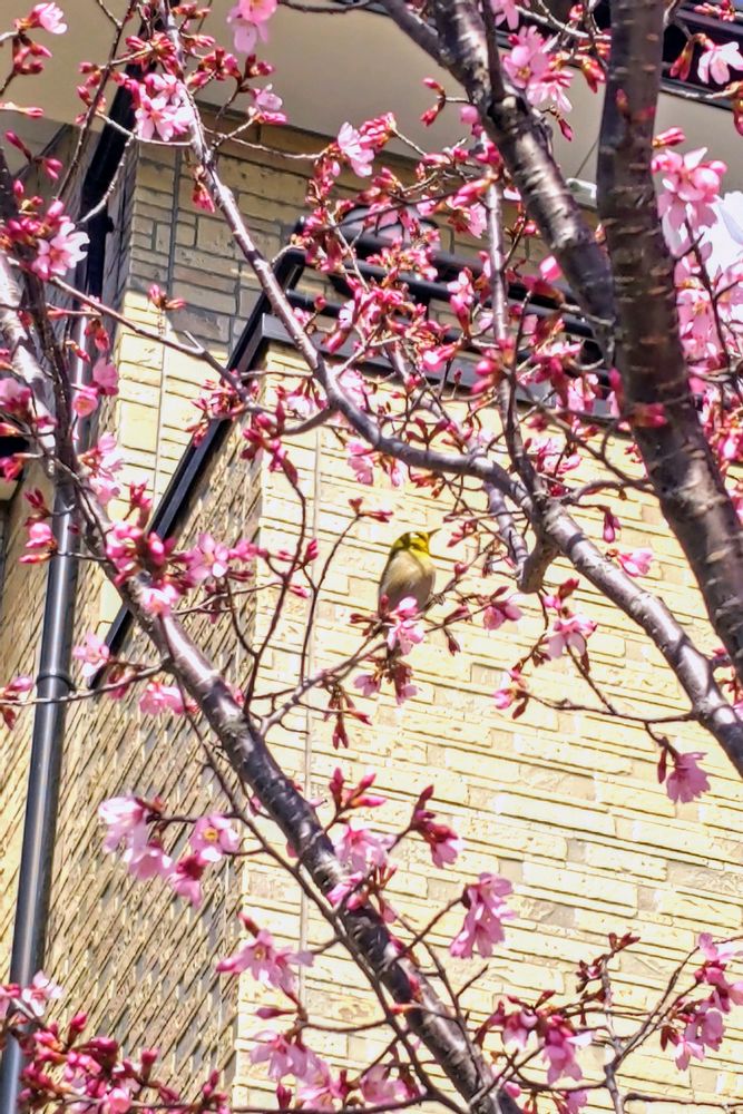 今日はまだまだ開いてない寒緋桜に頭を突っ込んでるサクジローも撮ったんだよ。