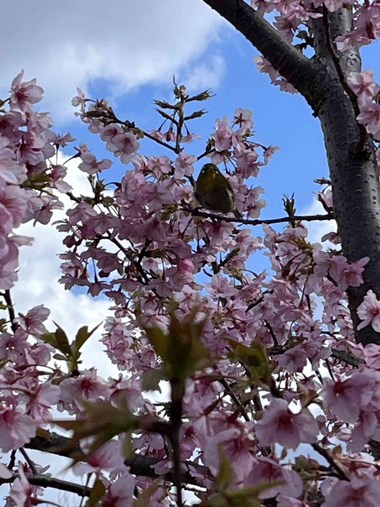 優しい💗色の河津桜にメジロさん🐦