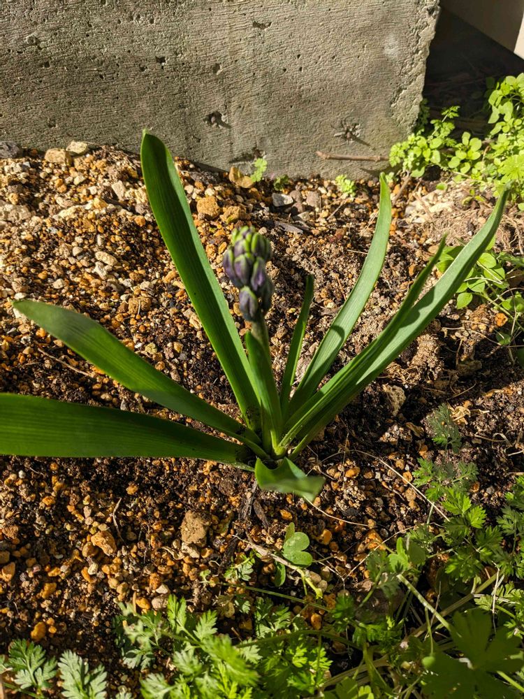 花後のヒヤシンスの球根を土に埋めてたら🧐知らない間に芽吹いてたꉂ🤣𐤔