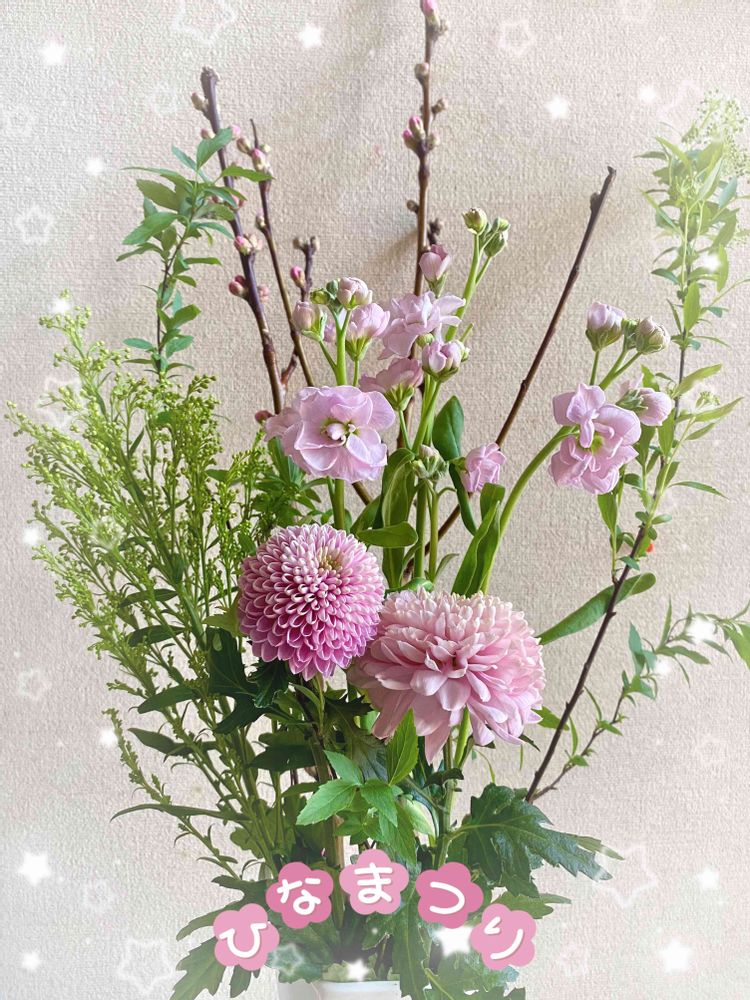 ピンク🩷の切り花と一緒に飾ったよ🎶