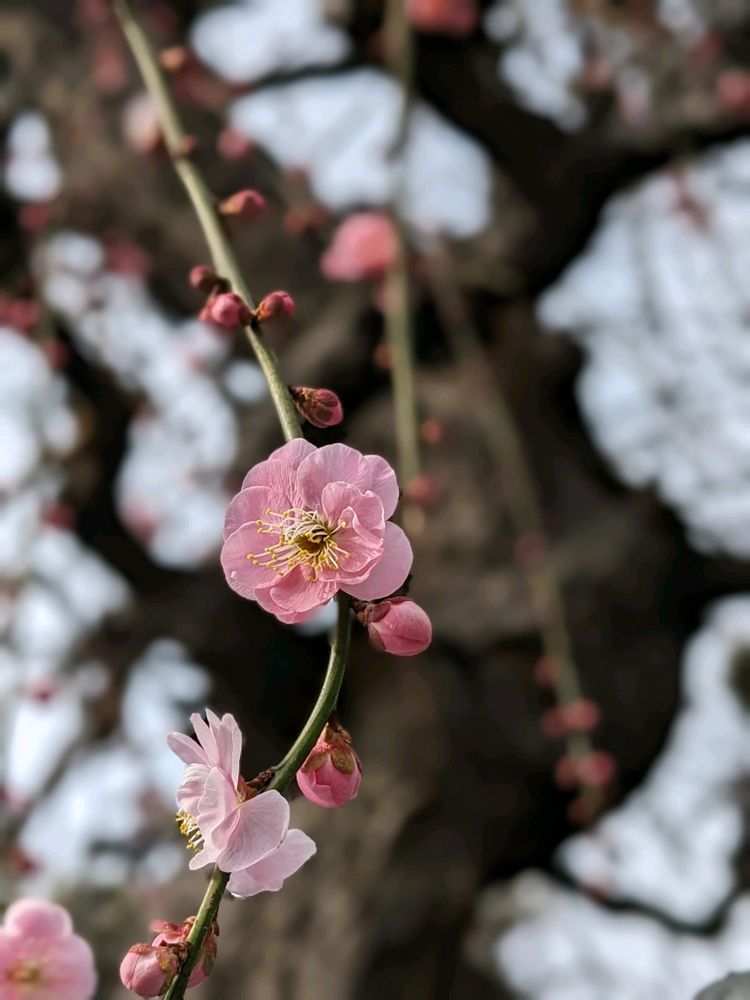 同じ枝垂れ梅ですがお天気が違うと雰囲気も変わります🩷