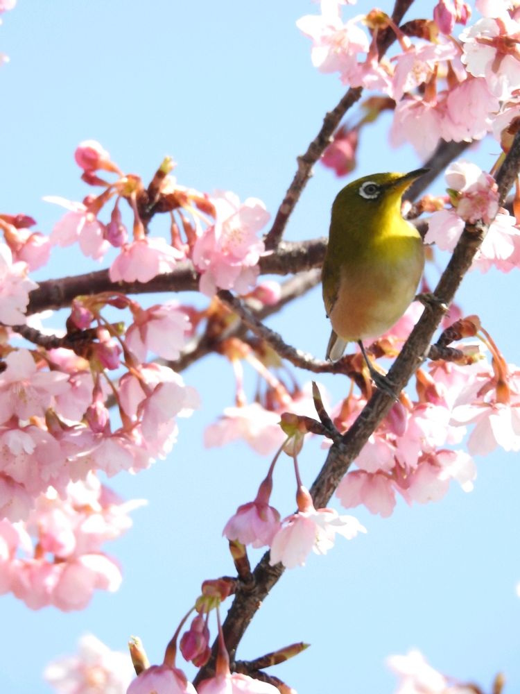 🦜🌸カワヅザクラとメジロ🌸🐦⬛