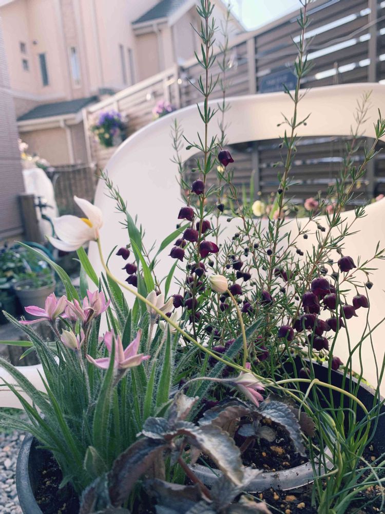 鉢にいれてます😉アッツザクラが見切り品だったので近々入れ替えが必要そうなので🥹