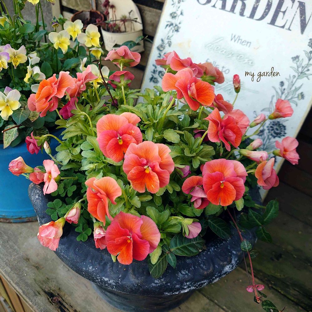 似た色のオキザリスも一緒に寄せ植えしてみました😊