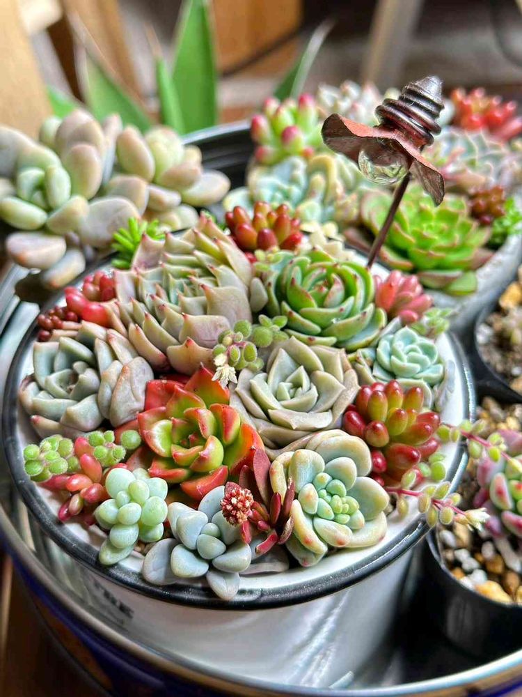 奥さんが多肉棚からチョイスし寄せ植えを作ってました😄