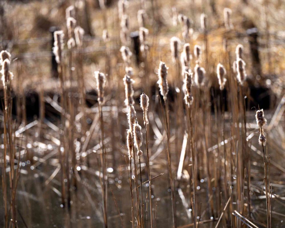 ヒメガマの穂が爆発したのち、頑張って残ってしまった風景。このシーンもそろそろ見納めかと思います。2024.02.28.撮影