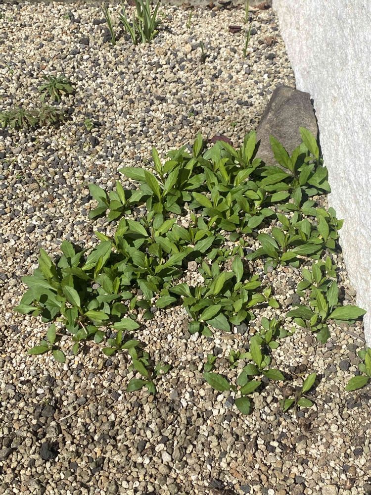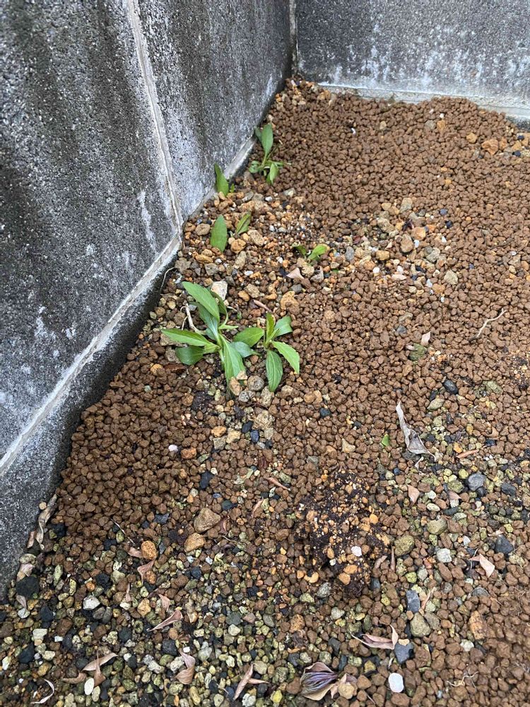 花壇の野紺菊がすご〜く広がるので、別の花壇の隅に移しました。土を掘っていたら、菊咲一華の芽がたくさんありました💦が、やっちまえ❗️と植えちゃいました😅菊咲一華は他の場所にもいますから😊