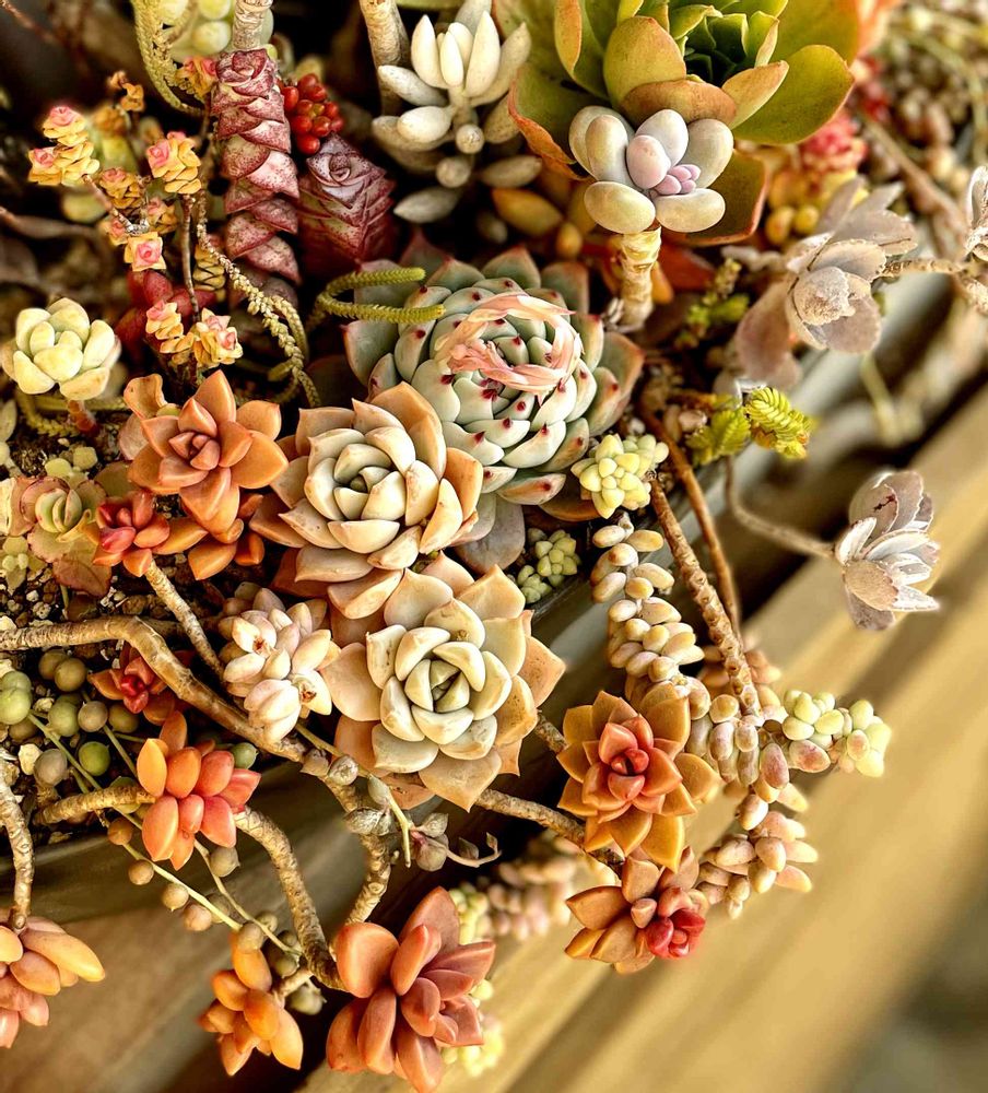 人間が勝手に好みに仕立てても、多肉は成長し日々変化するのだしサグラダファミリアの様に未完のままの寄せ植えという結論🤣
