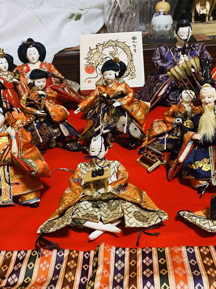 ずーっと、お内裏様🎎しか出してこなかった、段飾りのお雛様たち