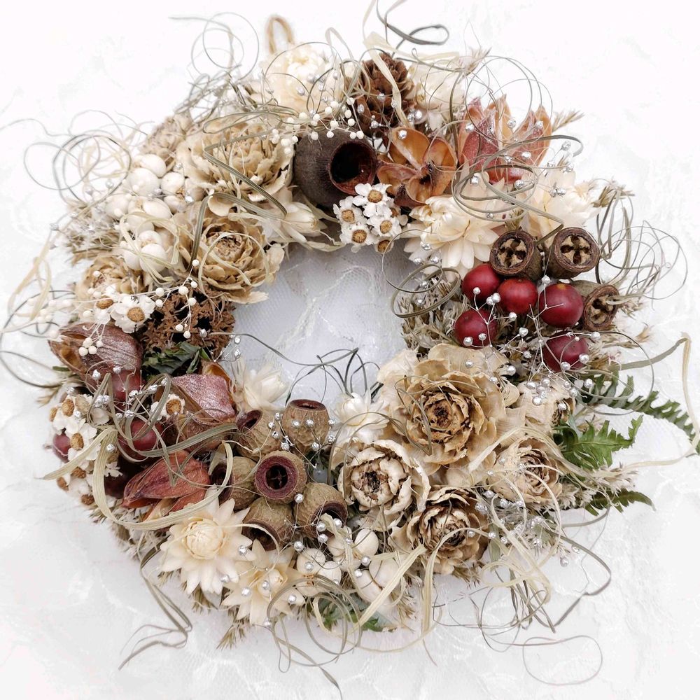 クルクルの葉っぱは緑色がシュロの葉でナチュラルベージュはトウモロコシの皮やてー🌽