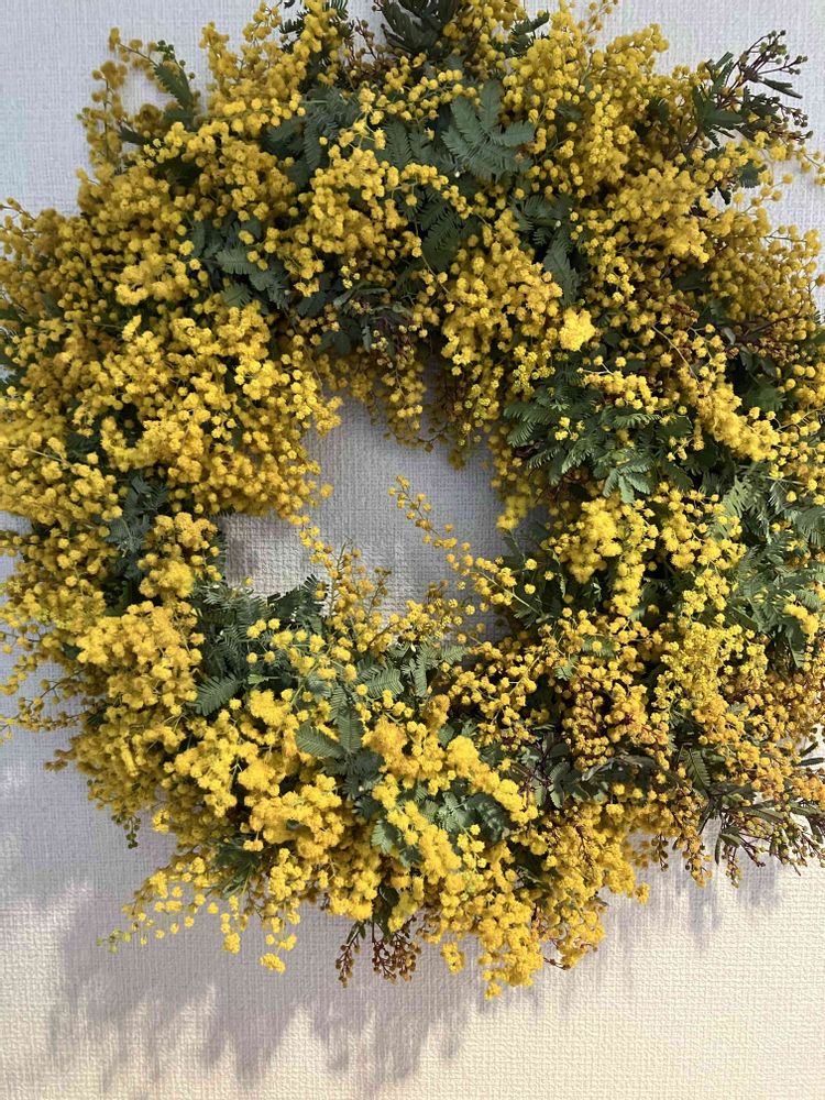 私もミモザが大好きで、リースのレッスンで作りました🌼🌼