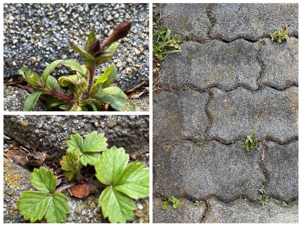 セメントのブロックの隙間から芽吹いたのは🔍👀?