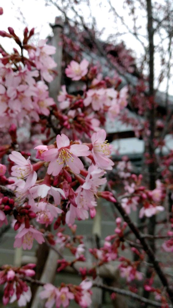 曇り空ですが出町柳 長徳寺のオカメ桜が咲きましたのでお届けします🌸🌸🌸