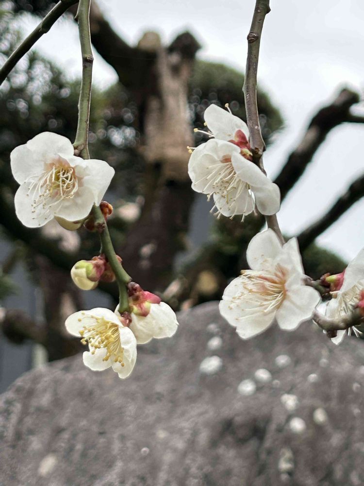 母は盆栽鉢の白梅を紅梅の傍に地植えしましたが