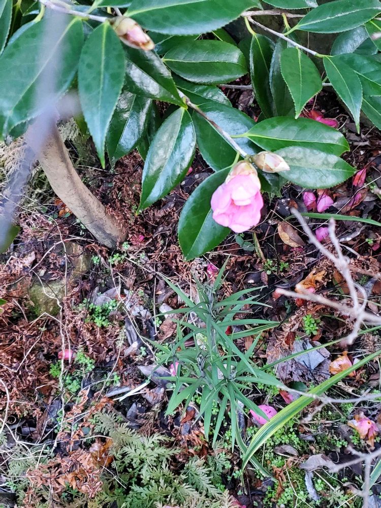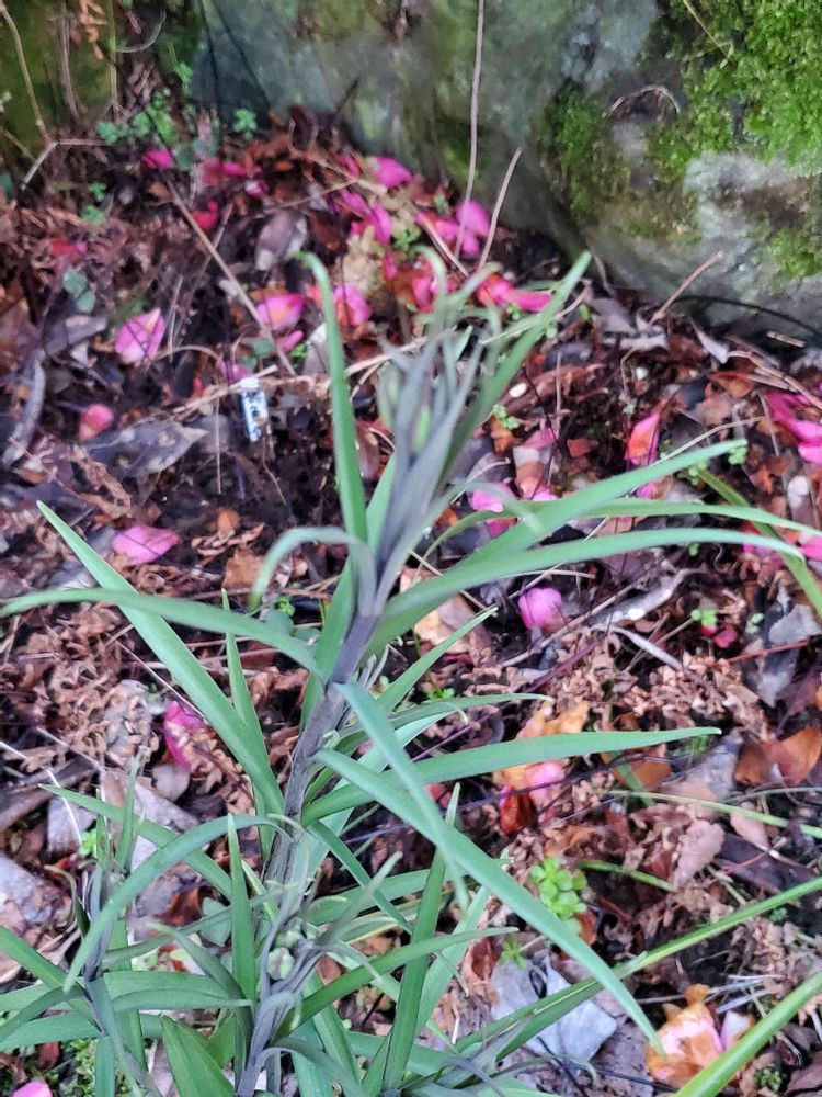 有楽の木陰に貝母の芽がかなり高く伸びていてビックリ💕