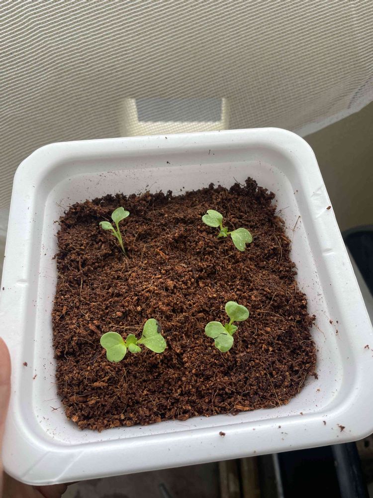 にんじんもだいたい芽が出た。途中心配になって、土をほじくってしまったので、バラバラになってしまった🥺トマトの芽がベランダ中に散らばってる笑。カブは間引きしたやつを水耕栽培でやってみる!ココピート培地に微分ハイポネックス。