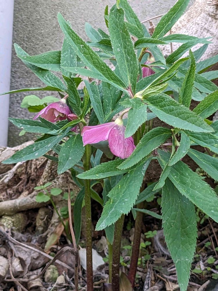 この一角は、ユーカリが1本だけ植えてあり根元にクリスマスローズ💮が4株植えてありますが、1株あったダブルのピンクピコティーは今年は出てきませんね😭