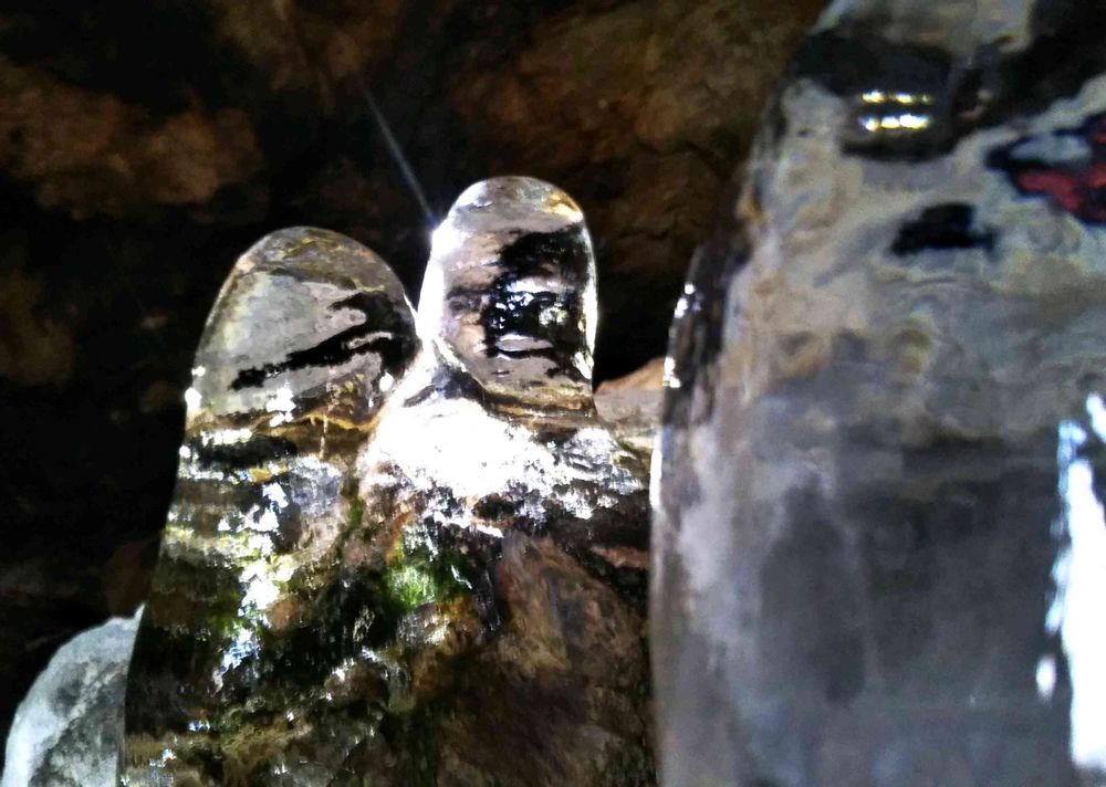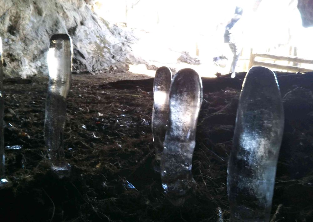 仙人窟にて氷筍。二年前は豊作でした。寒さにコウモリも羽凍る〜。