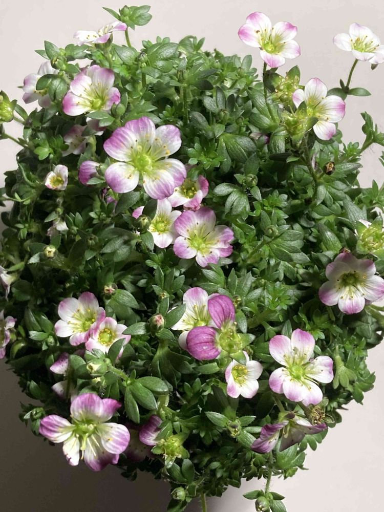 小さなクモマグサの一鉢にほっこり、幸せ気分に浸っている人が此処にも…😹