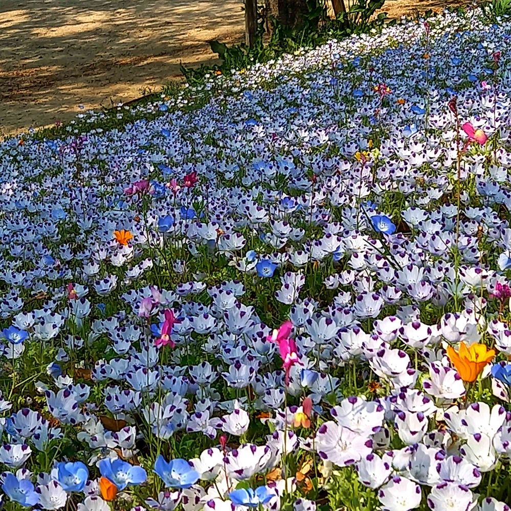 今年種蒔きからのネモフィラが草ホウボウで😂、過去の写真見返してたら、この姫路城北側のシロトピア公園のネモフィラの写真も見つかりました。